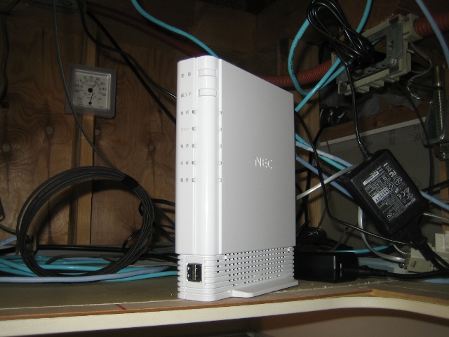 無線LAN機能については、以前のレンタルルータ(NECアクセステクニカ製AtermBL170HV)には指定(同AtermWL54AG)の無線LANカードを挿すことで無線LAN機能内蔵ルータにすることができましたが、今回届いたギガルータには最初から無線LAN機能が搭載されています。ただし使用契約(450円/月)をしないと使うことができないのでこれまたとても残念です。管理人は契約はせずに手持ちの無線LANルータを使用することにしました。
