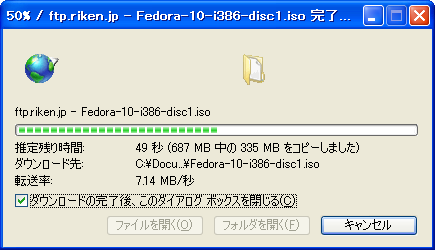 画像はfedoraのインストールCDイメージをftp.riken.jpからダウンロードしたときの様子です。速いっす・・・