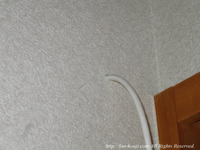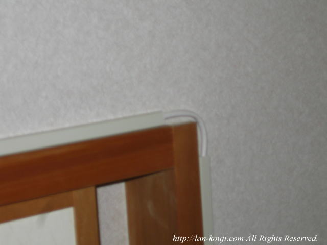 前編では点検口設置、VDSLターミナルとダイヤルアップルータの天井裏設置、リビングにLANコンセントの設置、までやりましたが、今回は和室へのLANケーブル配線です。ここはすべてを埋め込むのは無理と判断し途中露出配線にしました。