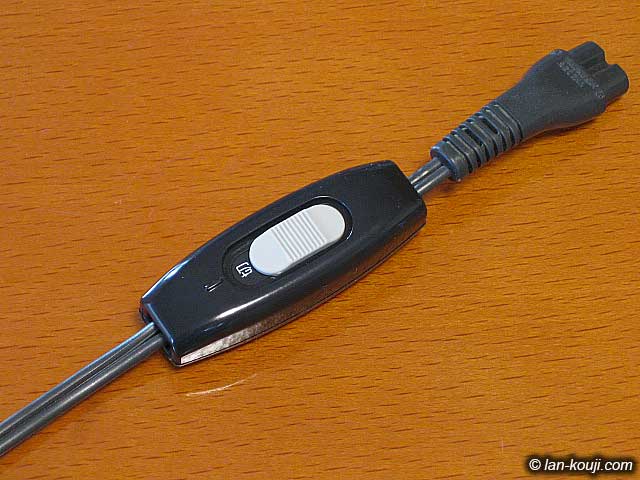 中間スイッチとは電源コード上に取り付けるスイッチのことで、機器本体に電源スイッチがないものや電源OFF時の待機電流をカットするといった用途で必要に応じて取り付けることができる便利なスイッチです。ここでは中間スイッチの取り付け方法の実際を手順を追ってご説明します。