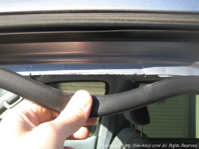 トリムを外しやすいようにウェザーストリップも外します。 手で引っ張れば容易に外れます。 |