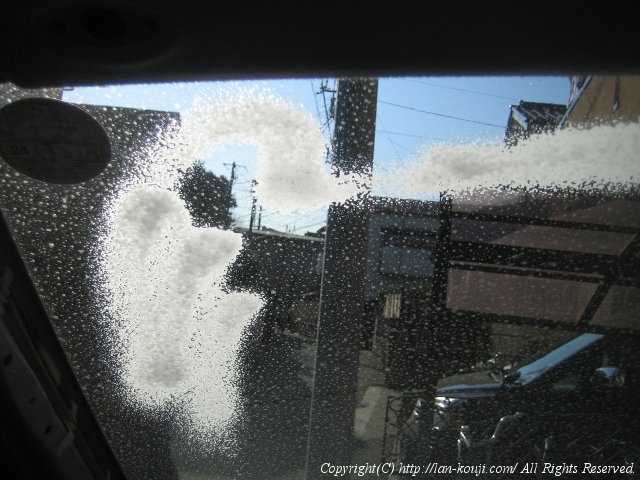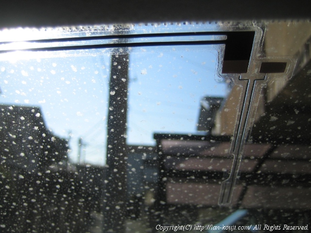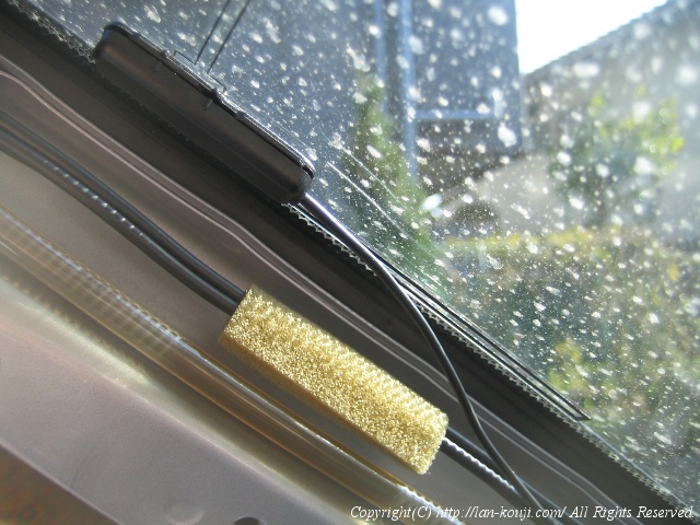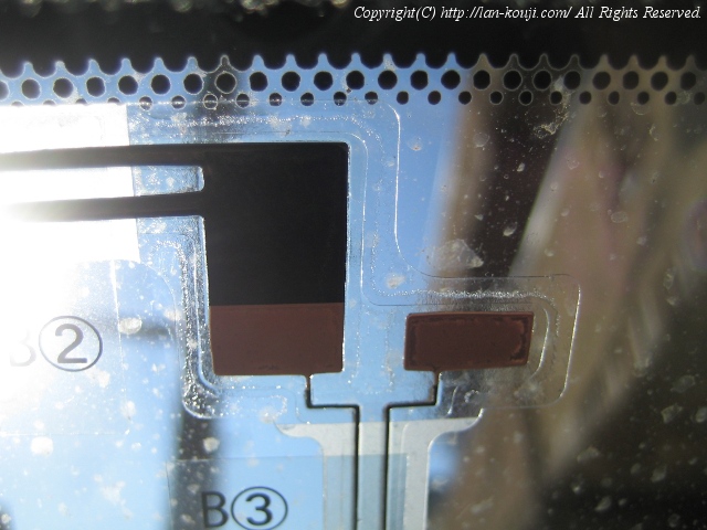 B2に続いてB3のセパレータをはがし、フロントガラスに強く押し付けます。 空気を抜こうとして強く擦るとエレメントが切れることがあるようなので注意です。 |