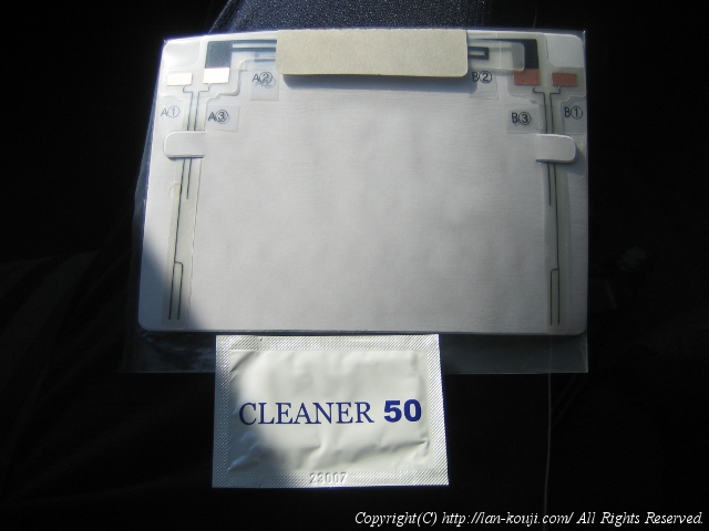 同梱されているフィルムアンテナです。これで2本分で同じものがもう一つあります。 貼り付けの際に掃除するための脱脂クリーナーも二つあります。貼り付け面をクリーナーで念入りに拭いて脱脂します。 |