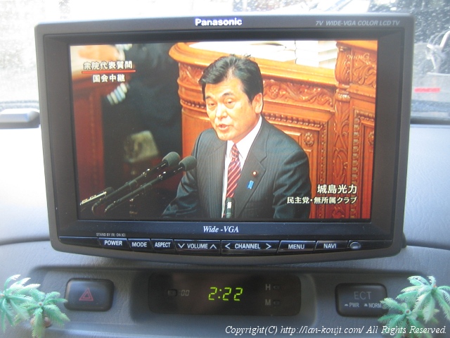 映った・・・なんかめちゃキレイです。さすがデジタル、コンポジット入力ですが車で見る分には充分すぎるほどの画質です。 今までが今までなんでやたらキレイに見えます・・・。 |