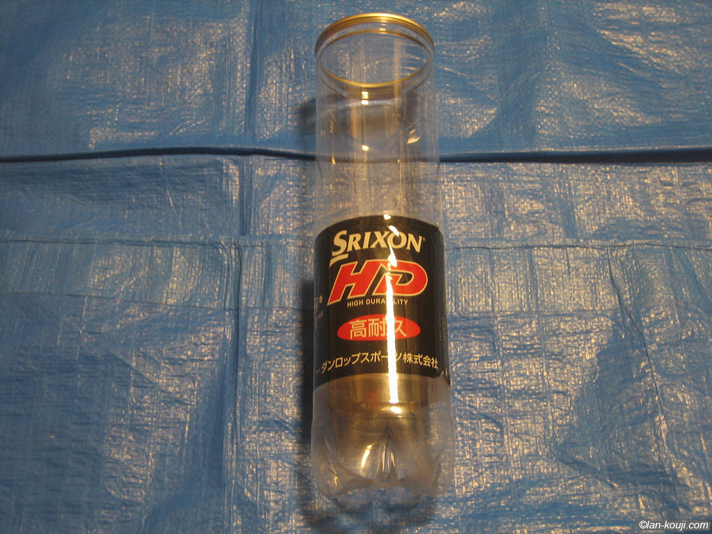 新品のボールが入っていた容器です。 ダンロップ、ブリジストン、ウィルソン、HEADなど各社それぞれ販売していますが、容器のサイズはほぼ同じなので加工にはとても都合がいいです。4個入りのものがおススメ。 テニスコートが近くにあったら、週末の午後とかに行くと空のペットボトルがごみ箱に大量に捨ててあったりします。 |