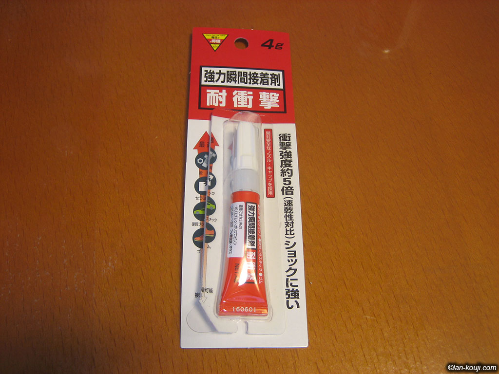 衝撃に強いタイプの瞬間接着剤(4g)です。 アロンアルファにも同様の製品があるのですが、コスパの良いプライベートブランドを選択しました。10gの物もあり、さらにコスパが高いです。 |