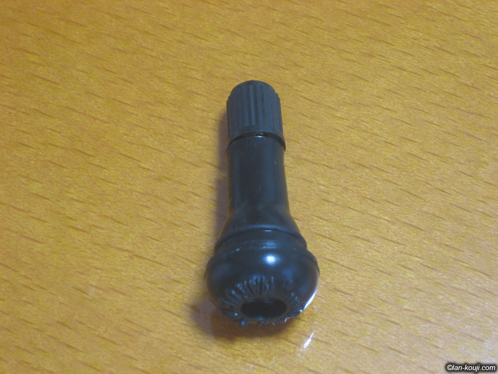 こちらはチューブレスバルブというもので、自動車のタイヤに広く使われています。 米式というバルブ形状で、米式に対応する自転車用空気入れを使うことで空気を入れることができます。型番はTR413。 |