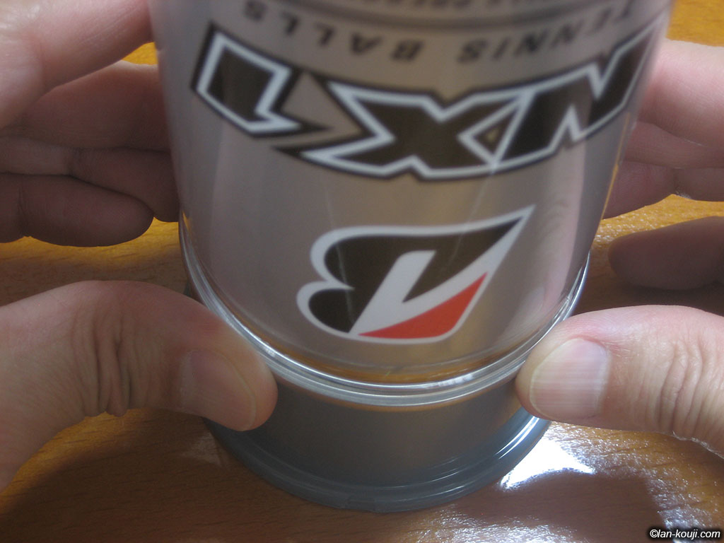 さて、硬式のテニスボールは中に圧縮された空気が入っていて、新品は圧力容器(炭酸のペットボトルと同じ構造のもの)に密封されて販売されています。開封する時に容器の中の空気が抜けることになるんですが、ひとしきり使い終わりカゴ等に入れて次の機会まで保管すると、使っていない時も少しずつ空気は抜けていきます。で、空気の抜けたボールは弾まなくなり、ゲームに使うのはもちろん練習に使うこともできなくなります。もうこうなってしまうと捨てるしかなくなるのでかなりもったいない。表面はキレイでも弾まないボールは使い物にならなくなります。
