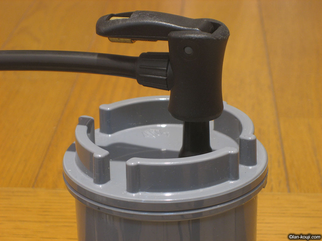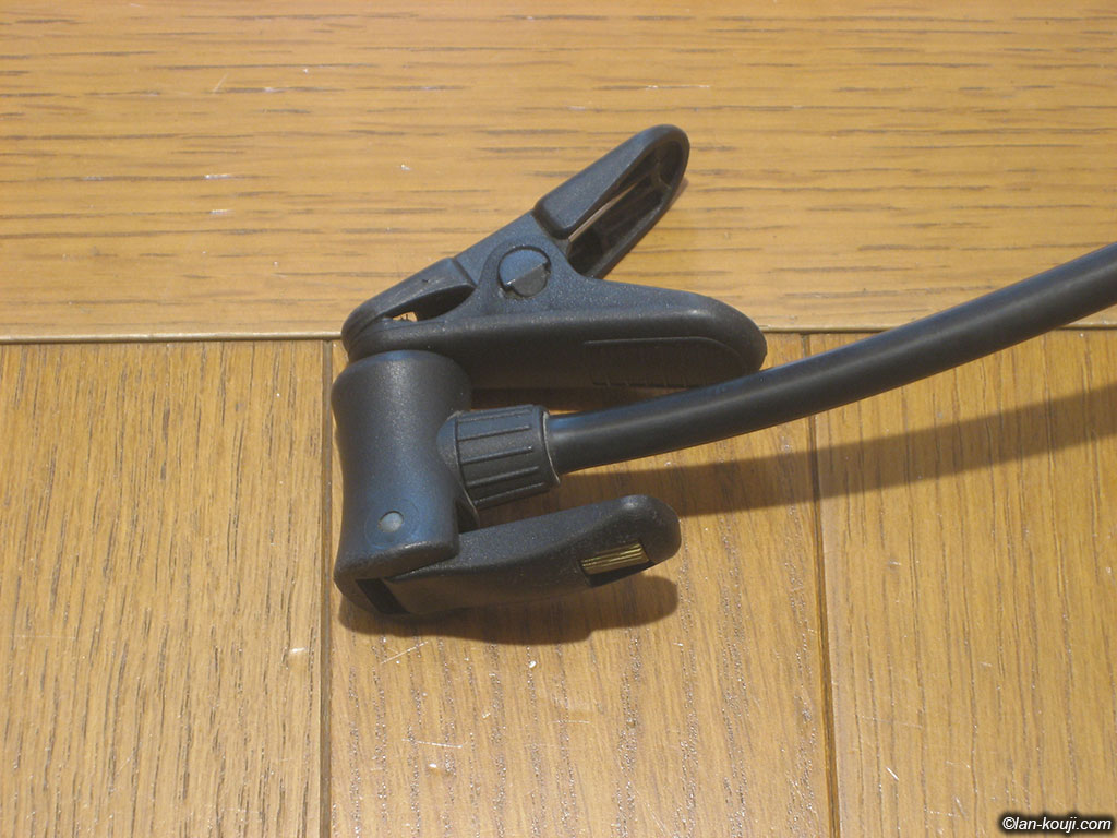 保圧容器が出来上がったら、ちゃんと機能するか空気を入れて確認します。 空気を入れるためには米式バルブに対応する空気入れが必要になります。バルブに装着する部分が画像のようになっているものです。 |