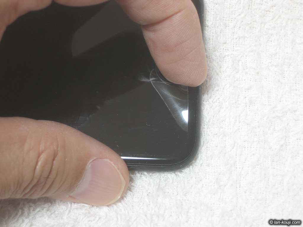 帰宅して早速スクリーンにフィルムを貼るわけですが、結構難しい作業だったりします。商品パッケージには「ずれないガイド付き」とか「セパレート台紙」などを謳って貼り易さをアピールしていますが、ゴミや埃が入っちゃうとせっかくのまっさらスマホが台無し。気分良く帰ってきたのに「なんだよー」と一気に気分悪くなります。
