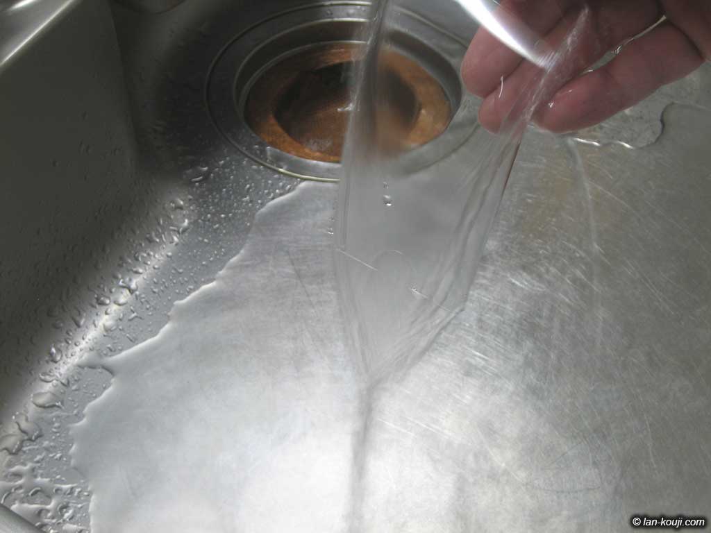 接着面に付いたゴミを水で洗い流します。 特にこすったりはせず、流水にさらす感じで。同様にスマホの画面もキレイにします。 |