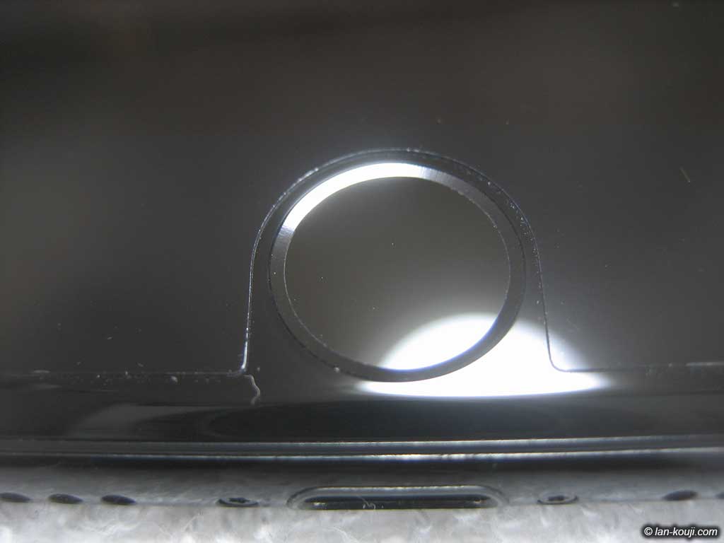 ホームボタン付近。ズレが無くキレイに貼れてます。気持ちいいです。 |