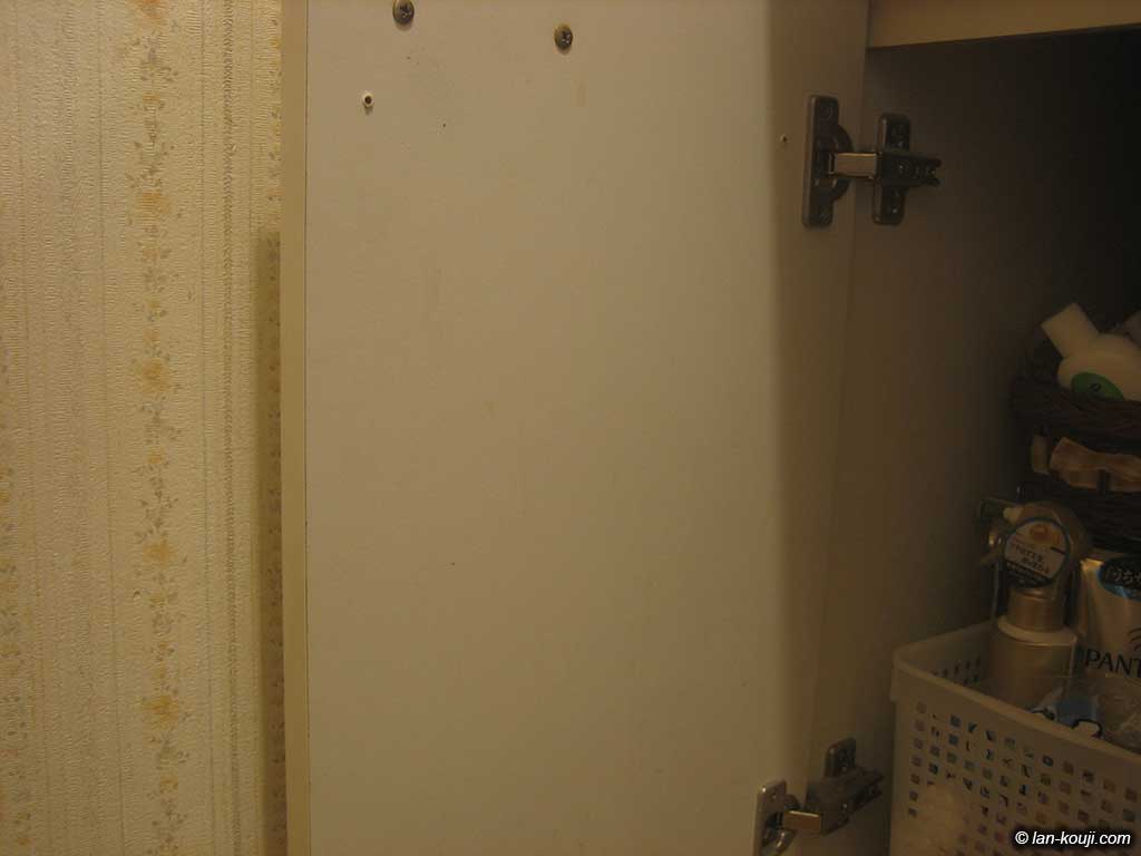 反対側の扉にも取り付けます。 扉の蝶番を外して作業しました。最初からこうすれば良かったです・・・ |