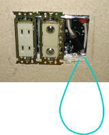 配線器具を外すと電話線が通っているCD管が見えます。 天井裏や壁内に配線することが難しい場合は、この配管を利用してLANケーブルを配線することにするしかなさそうです。 |